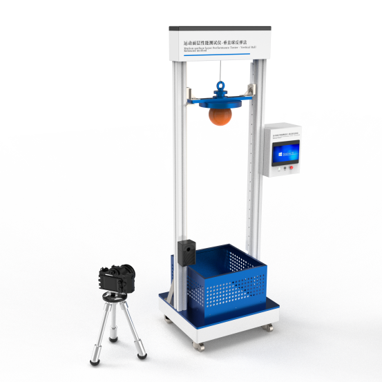 将测试用球从规定高度释放,分别自由下落到混凝土面层和运动面层上,测量测试用球在不同面层上次反弹的高度,测得垂直球反弹高度值,计算垂直球反弹率。