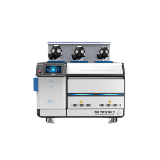 将面罩戴在匹配的试验头模上,封死吸气阀,润湿呼气阀。启动真空泵,使面罩内压力达设定值,停止抽气,开始计时,观察并记录标准内规定时间内面罩压力变化值。