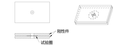 两块刚性件将试验圈固定,二者圆孔同心,刚性件固定在设备上。
