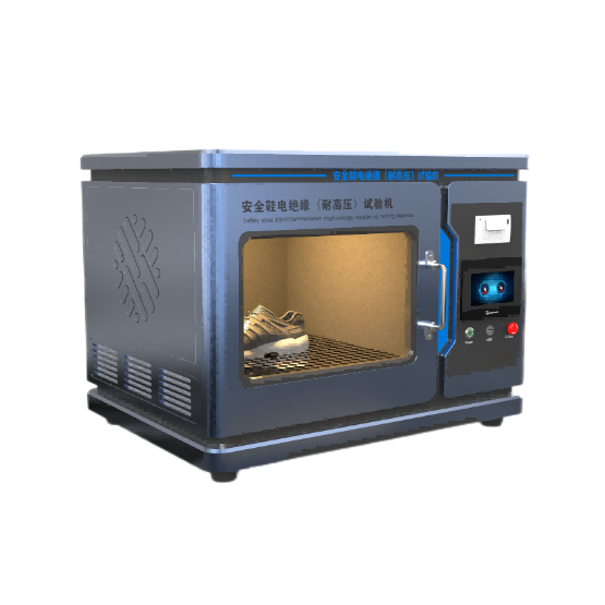 耐高压试验机用于测试安全性鞋、防护作业鞋、以一定的高压通过测试试样,通过测试量试样的漏电流的大小或判断是否存在测试试样被电击穿的现象来评估测试试样是否具有耐高压绝缘性能。