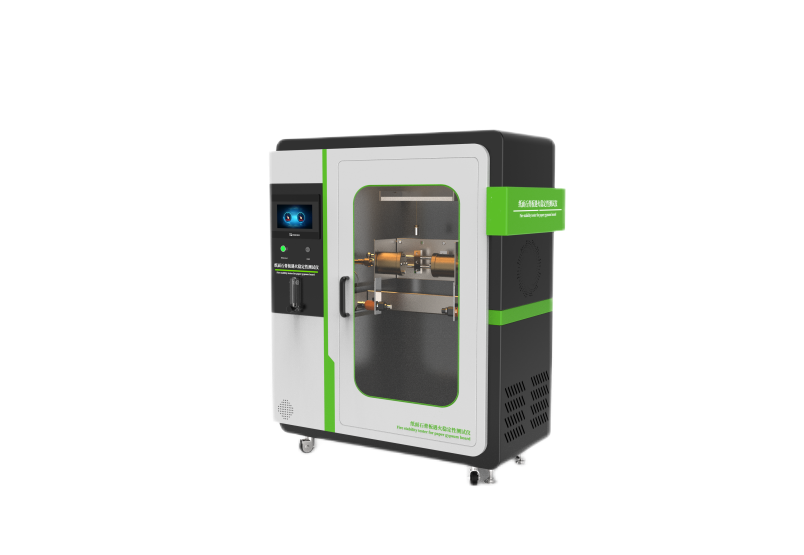 试验介绍:将试样钻孔并在规定环境条件下处理。用支杆将试样悬挂于两个喷火口中间,喷火口与试样表面垂直。用液化石油气作为热源向遇火稳定性测定仪的两只燃烧器供气,燃烧器喷火口距板面为30mm。按标准规定再试件下端悬挂荷载,点燃燃烧器。用热电偶在距离板面5mm处测量温度。试验初期应在不使试样晃动的情况下,去除掉落在热电偶上的已炭化的护面纸。 通过调节,在3min内把温度控制在800±30℃,试验过程中一直保持此温度。从试件遇火开始计时至试件断裂破坏。记录每个试件被烧断的时间,以五个试件中小值作为该组试样的遇火稳定性,至1min。
